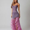 VESTIDO LONGO EM FRANJAS ROXA E ROSA – REF.L11